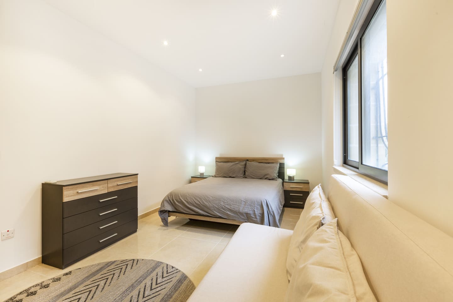The second property is in Madliena. This area is a peaceful residential neighborhood, which is part of Swieqi. It is very close to St. Julian’s. The apartment is a modern, fully furnished home. It has three bedrooms and two bathrooms. The main bedroom includes a walk-in closet. The apartment sleeps up to seven people. It features an open-plan kitchen and living area. There is a coffee machine, dishwasher, and washing machine. The property is fully air-conditioned. It is part of a complex that offers access to a communal pool and gym. This is a big plus for tenants. This apartment is only for long-term rental. It is also available for sale.
